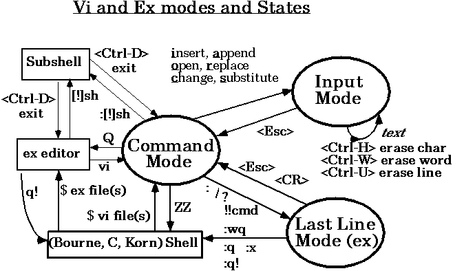 2. Operating System Functions Manage Peripherals Manage File System Manage CPU and Memory Schedule when programs run Manage Input and Output Manage Communications 3. UNIX NotesWeek 1 Notes Week 2 Notes Week 3 Notes Week 4 Notes Week 5 Notes Regular Expressions Tables (Sarwar et al) Week 6 Notes Week 7 Notes Week 8 Notes 4. vi Notes vi editing modes diagram vi editing modes text table vi editing Survival Sheet vi: Line Positioning commands diagram vi: Line Positioning commands table vi: File Positioning Windows diagram vi: File Positioning Windows vi Problems Opening Files vi Problems Saving Files 5. UNIX TutorialsTutorial #1 UNIX Commands: Logging in and out Tutorial #2 More UNIX Commands: cal, date, ls Tutorial #3 File Manipulation Unix Commands Tutorial #4 Other Directories: ls, cp Tutorial #5 Manipulating Directories: mkdir, cd, ls, cp, mv, rm Tutorial #6 Create File names (with ambiguous names: ?, *, [] ) Tutorial #7 Change Access Permissions Tutorial #8 Establishing links Tutorial #9 Basic Pipes and Filters Tutorial #10 Sorting lines based on field contents Tutorial #11 Other Filter Commands Tutorial #12 Using Grep Tutorial #13 Write and Execute Simple Shell Scripts Tutorial #14 awk: Basic Processing of data in files 6. Mail TutorialsTutorial #1 mail: management in the system's mailbox Tutorial #2 mail: Creating mail messages Tutorial 3 write: Using real-time Communication 7. vi TutorialsTutorial #1 vi Tutorial #2 vi navigation Tutorial #3 vi deleting and inserting Tutorial #4 vi inserting and changing Tutorial #5 vi searching and substituting Tutorial #6 vi copy and move text via buffers 8. McMullen WorkbookChapter 1 Questions (Your 1st Session) Chapter 2 Questions (The Command Line) Chapter 3 Questions (The Directory Hierarchy) Chapter 9 Questions (The vi Editor) 9. Other Resources